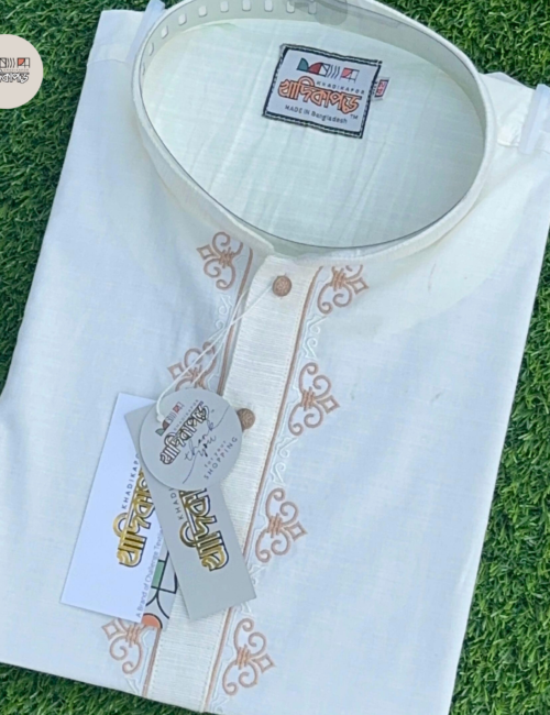 সাদা খাদি এমব্রটারী পাঞ্জাবি- WE-10