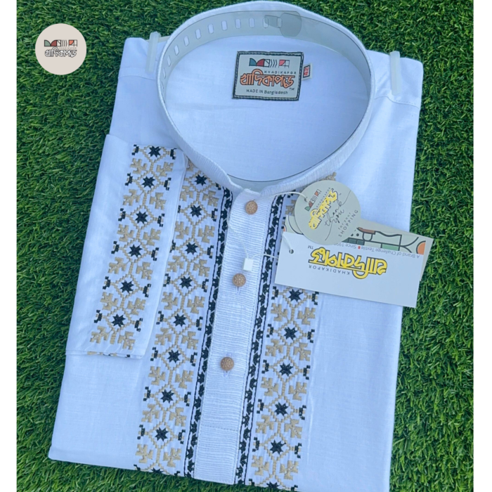 সাদা খাদি এমব্রটারী পাঞ্জাবি- WE-18